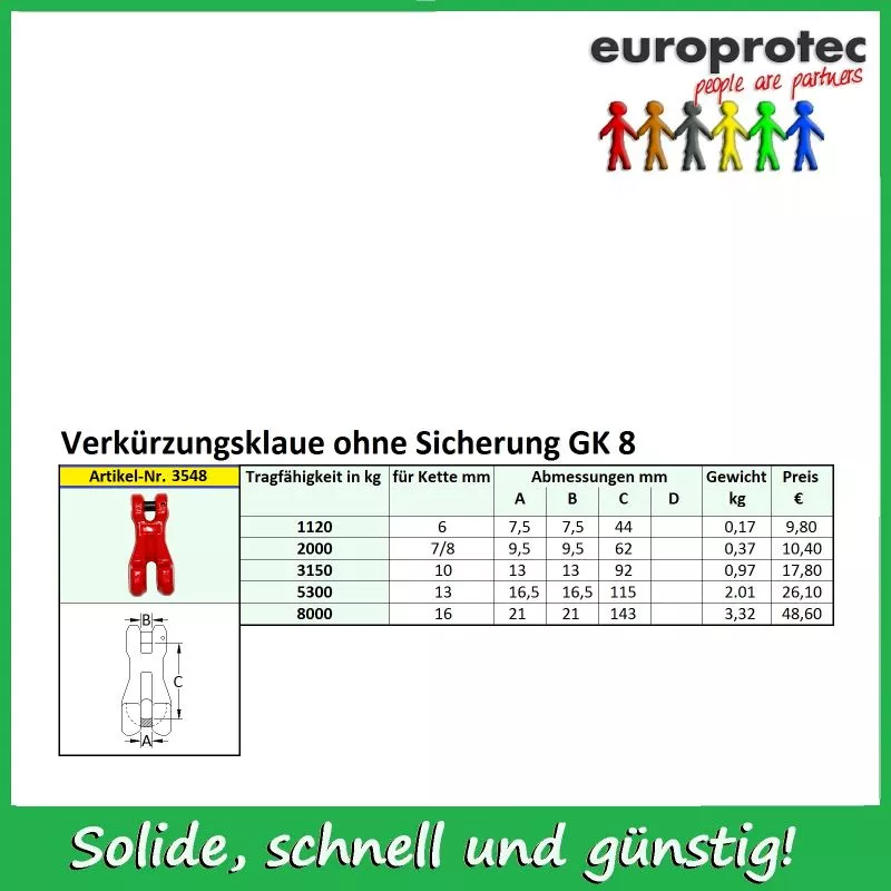 Verkürzungsklaue ohne Sicherung - Güteklasse 8 - Nenndicke 8mm