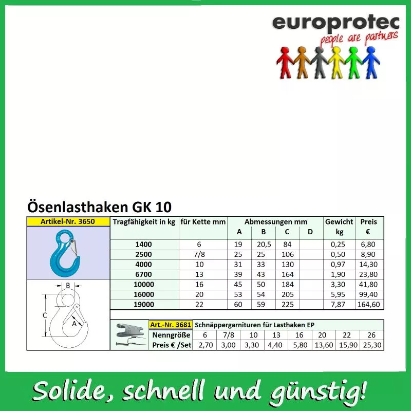 Lasthaken GK 10 mit Öse und Sicherungsfalle - für Kette 7/8mm