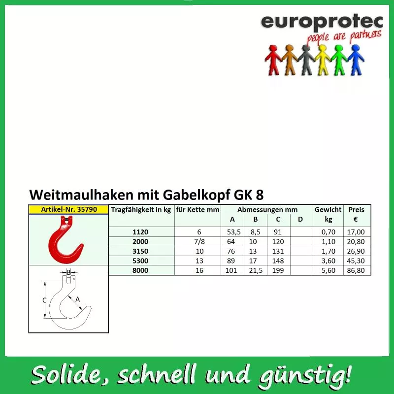 Weitmaulhaken/Giessereihaken/Containerhaken GK 8 für Kette 7mm