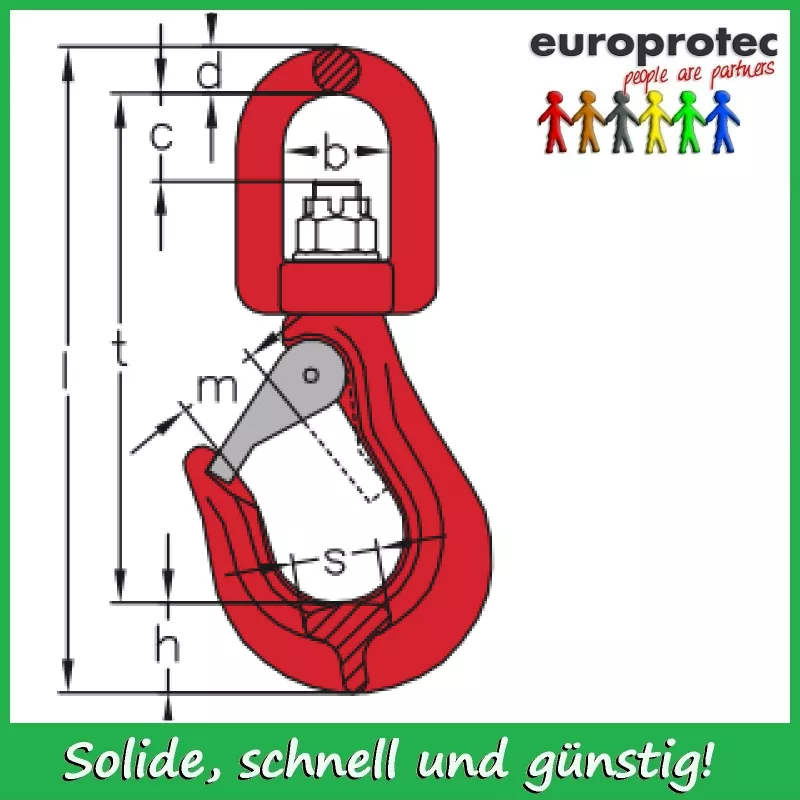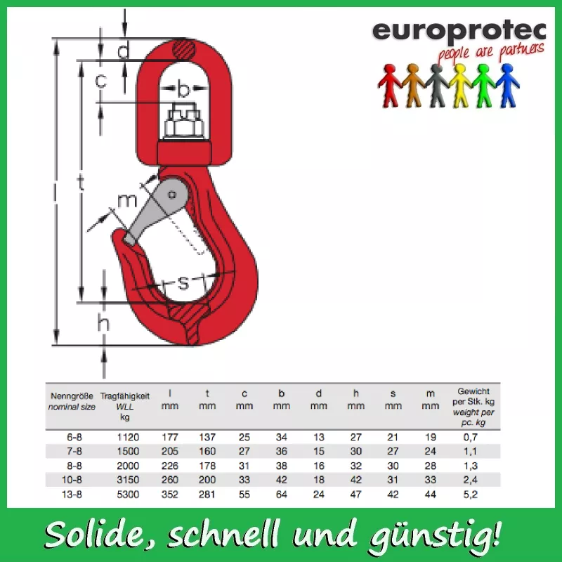 Wirbelhaken GK 8 mit Kugellager - Nenndicke 10mm - Tragfähigkeit 3.150kg