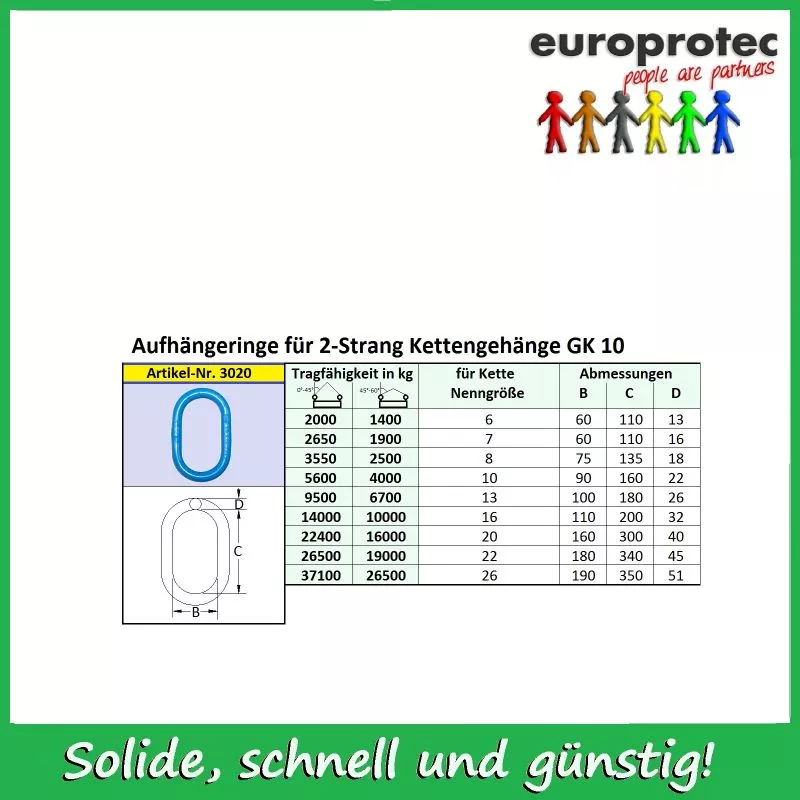 Aufhängering Güteklasse 10 ohne Flachstelle (A 45) für 2-Strang Kettengehänge - Nenndicke 22mm