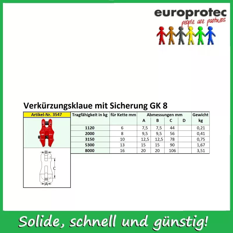 Verkürzungsklaue mit Sicherung - Güteklasse 8 - Nenndicke 8mm