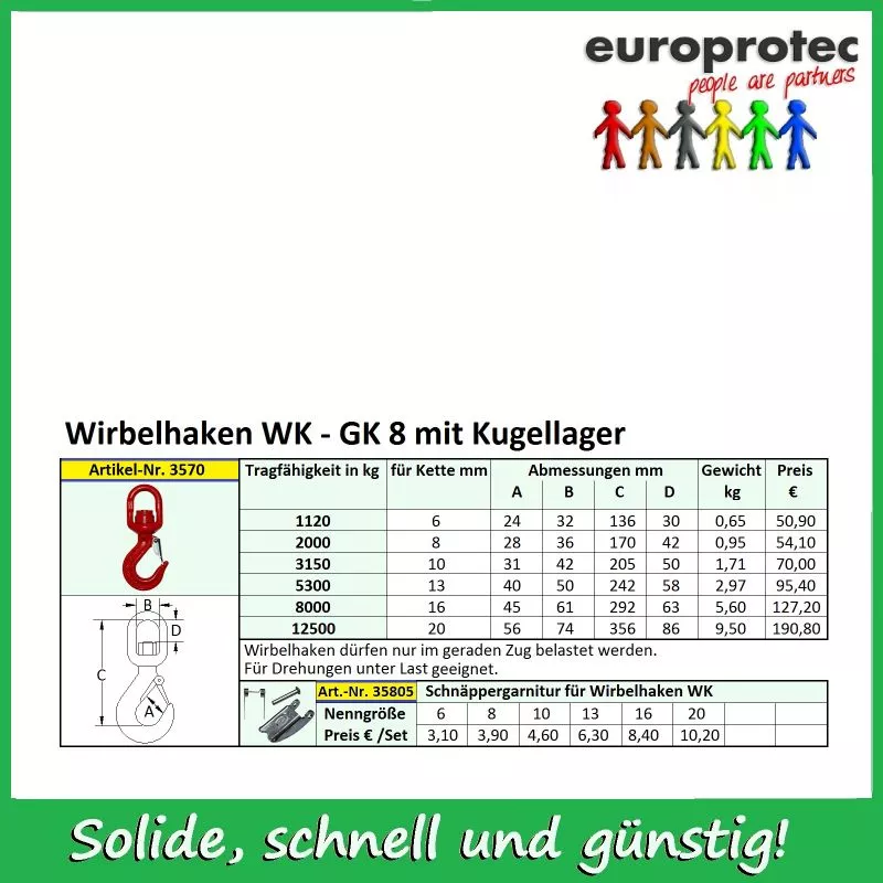 Wirbelhaken WK - GK 8 - mit Kugellager - für Ketten-Nenndicke 13mm - Tragfähigkeit 5.300kg