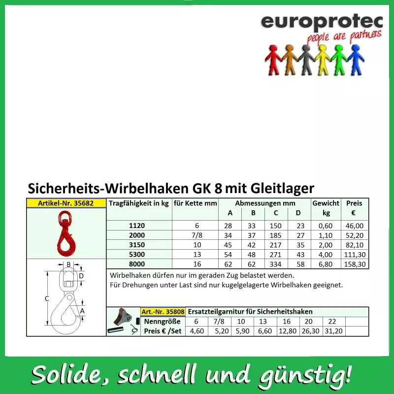 Sicherheits-Wirbelhaken mit Gleitlager GK 8 - für Ketten-Nenndicke 7/8mm - Tragfähigkeit 2.000kg